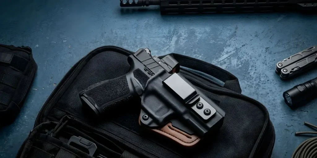 The Springfield Echelon was released with two barrel configurations — the 4.0C Compact and the 4.5F Full-Size — and one of the most common questions buyers have before ordering is whether they need a different holster for each. The direct answer is: no. The same IWB Hybrid Holster fits both the Echelon 4.0C and the Echelon 4.5F. This guide explains exactly why that’s the case, covers the holster’s hybrid construction in detail, and gives you a practical setup framework for carrying a full-size service pistol inside the waistband.