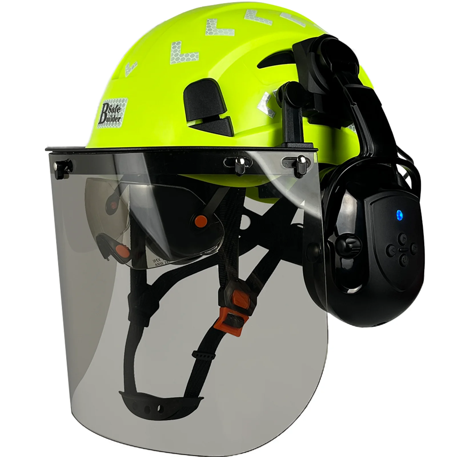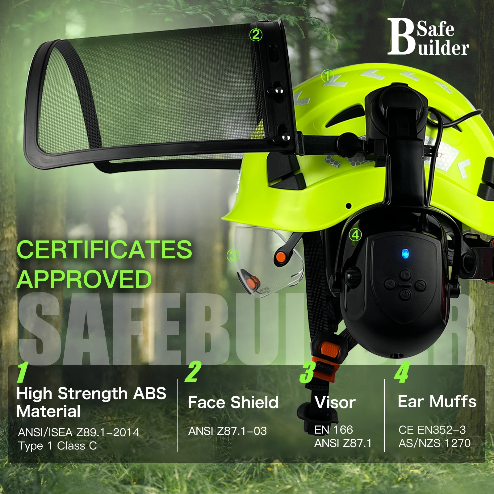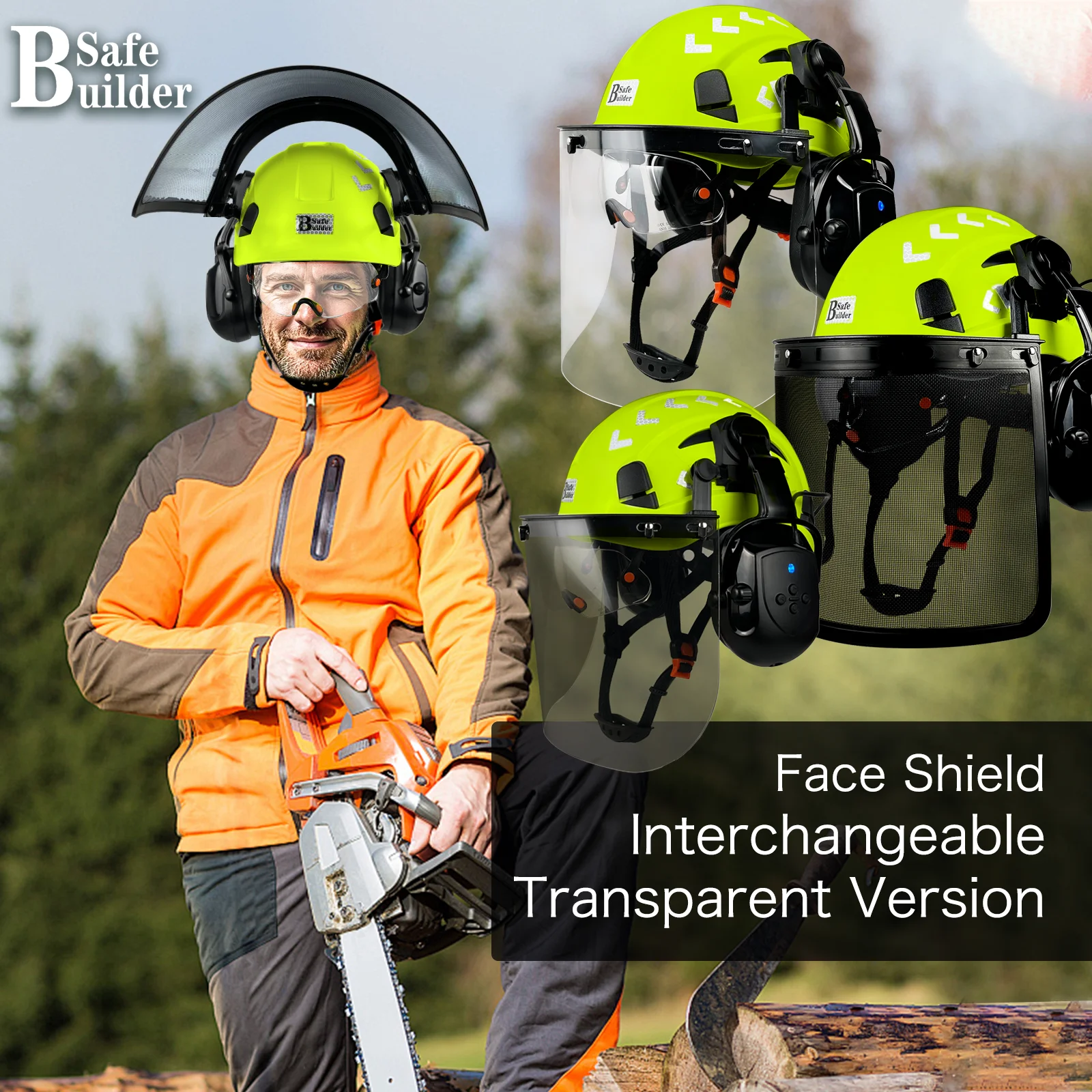Protect your head, face, eyes, and hearing with this forestry arborist helmet designed for demanding outdoor work. Built with a durable ABS shell, 6-point suspension, adjustable fit, Bluetooth ear muffs, and a full visor system, this hard hat offers a practical all-in-one safety solution for chainsaw work, tree trimming, logging, and landscaping tasks.