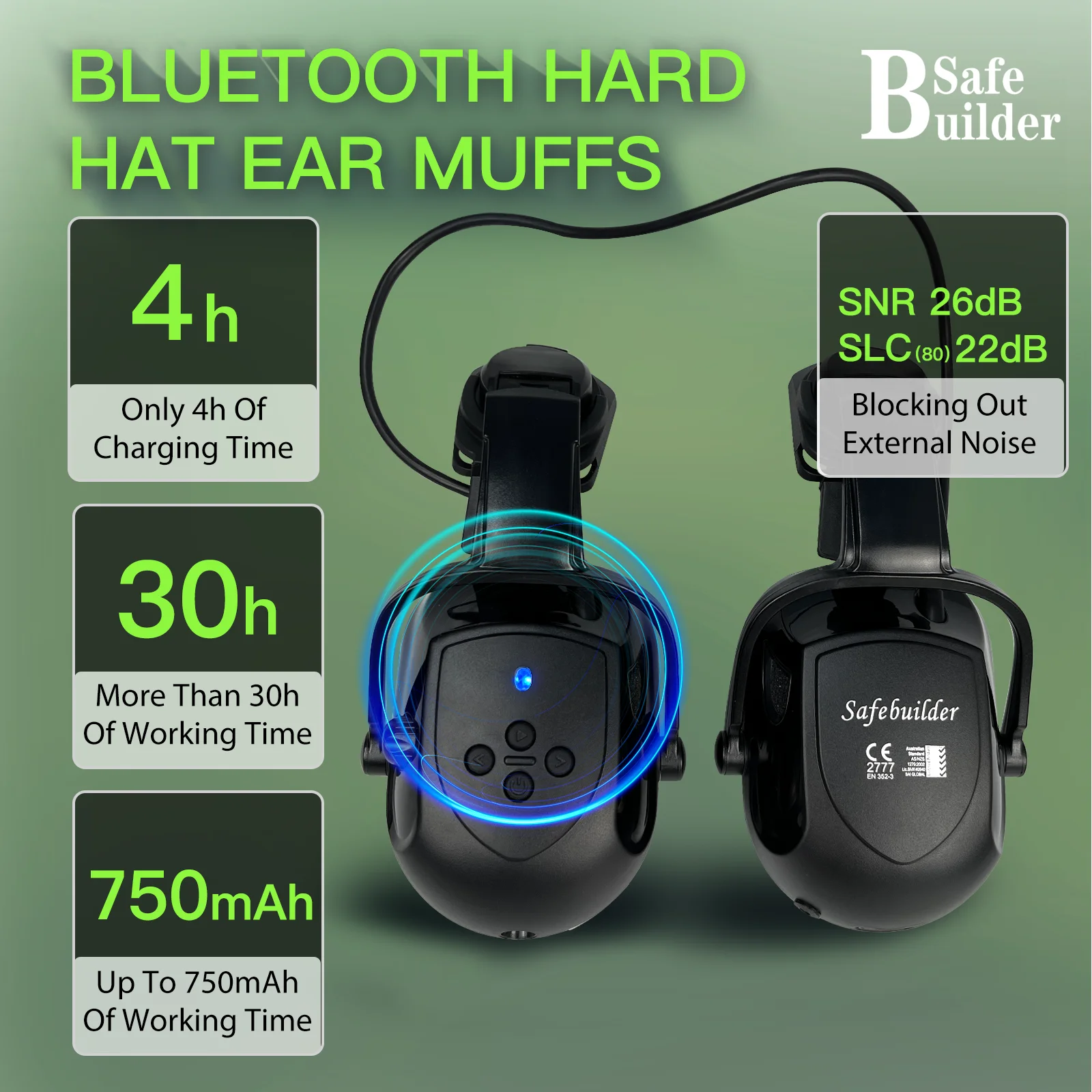 Bluetooth ear muffs for hearing protection and convenience.